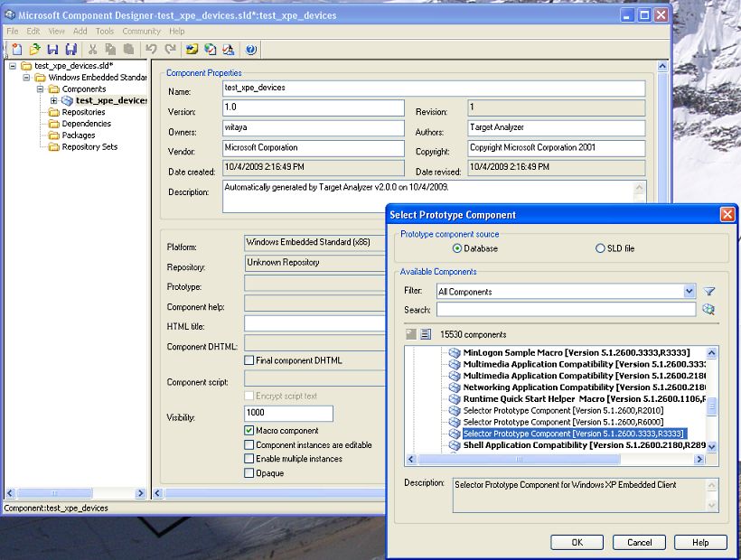 เริ่มด้วย เปิด Component Designer ขึ้นมา import ไฟล์ devices.pmq และในขั้นตอนนี้ให้ทำการเลือก prototype ให้เป็นแบบ selector เพื่อที่เราจะได้สามารถทำการเลือก component ต่างๆได้ใน Target Designer ดังรูปข้างล่างที่เห็นเป็นรายการ check box ขวามือน่ะครับ