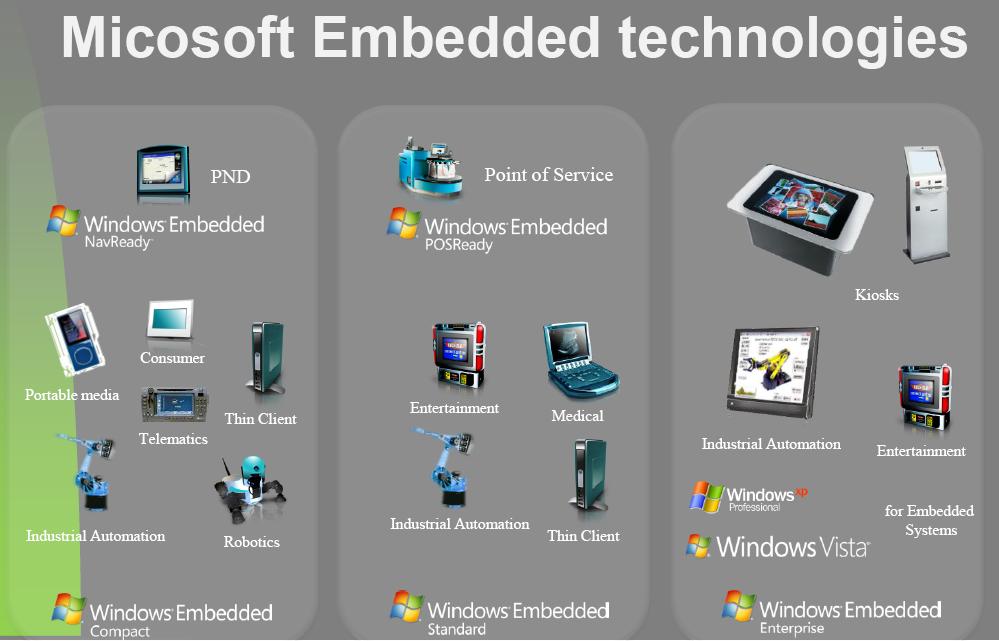 สำหรับ Windows Embedded Studio 2009 ก็พัฒนาต่อมาจาก Windows XP Embedded service pack 2 นั่นเอง โดยเจ้านี้ก็จะเป็น Windows XP service pack 3 ถามว่า แล้วงี้มันต่างจาก XP ที่ใช้บน เครื่อง desktop ยังงัย คำตอบคือ ไม่ต่าง ครับ ที่แตกต่างคือการติดตั้งและคอนฟิกมัน เพื่อให้เหมาะสมกับงานนั้นๆโดยเฉพาะ ไม่ว่าจะเป็นทางด้านฮาร์ดแวร์หรือการใช้งาน